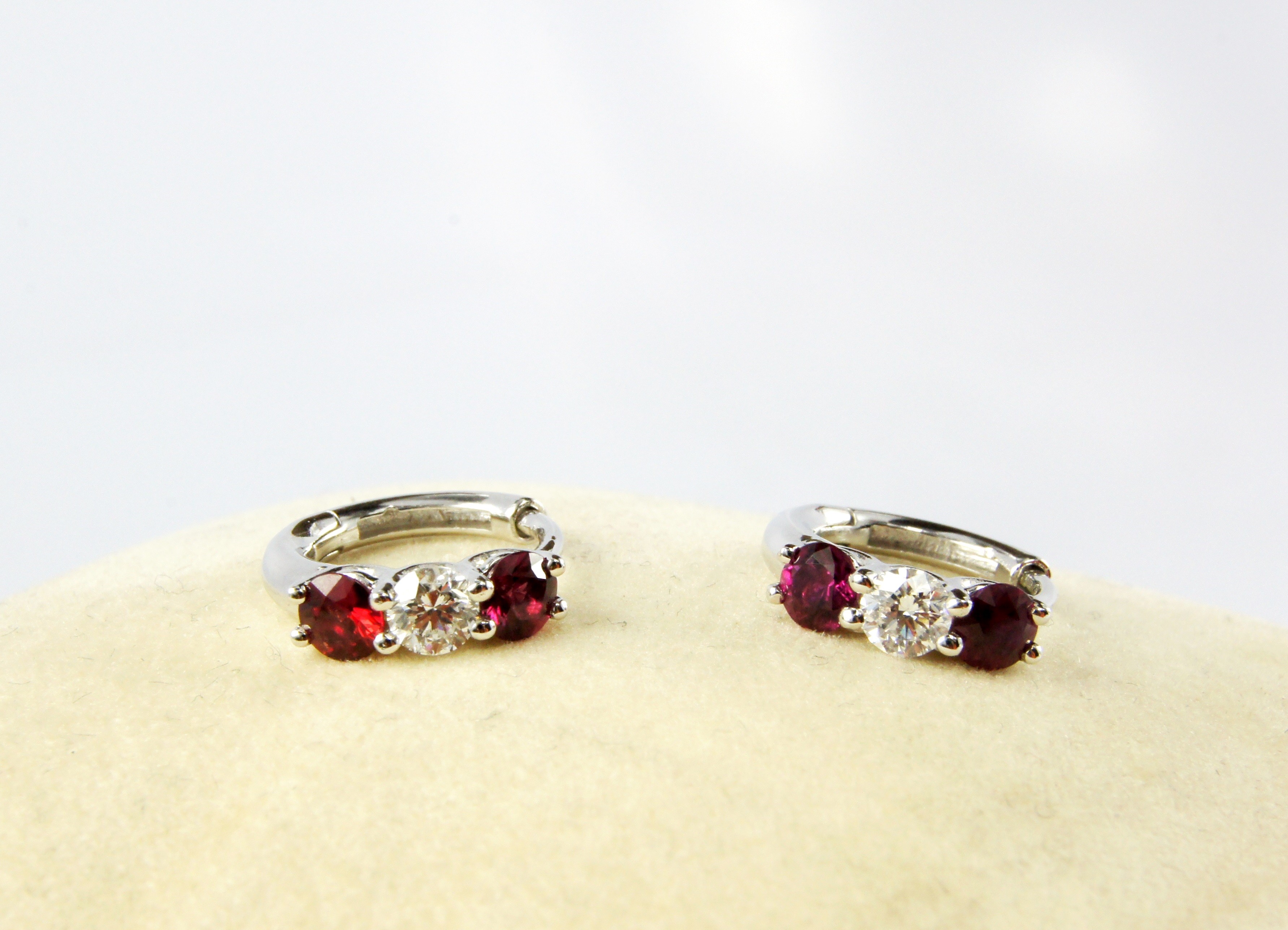 18K White Gold Diamond and Genuine Ruby loop earrings