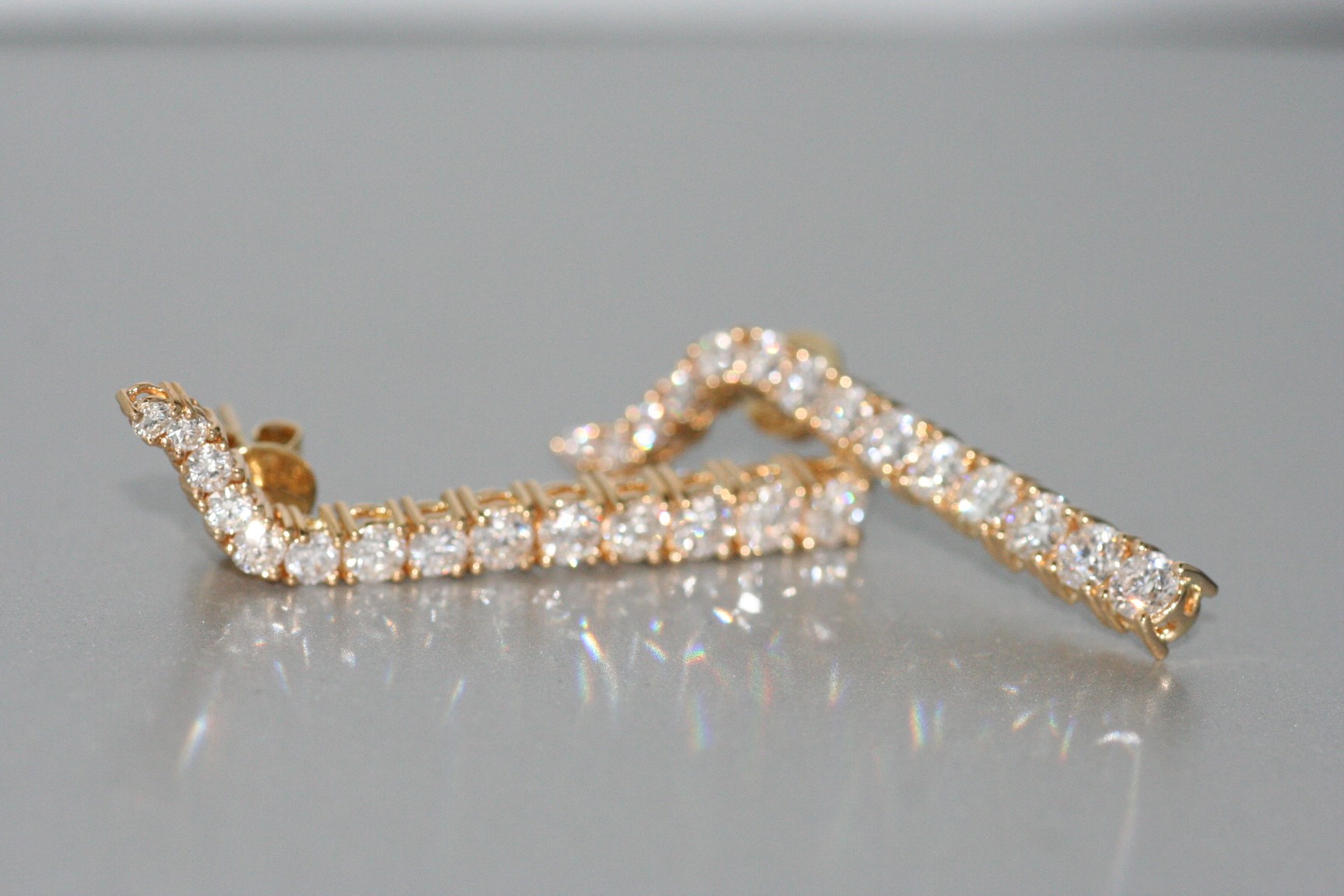 A pair of 18 Karat yellow gold diamond earrings with 3.15 cts of diamonds.