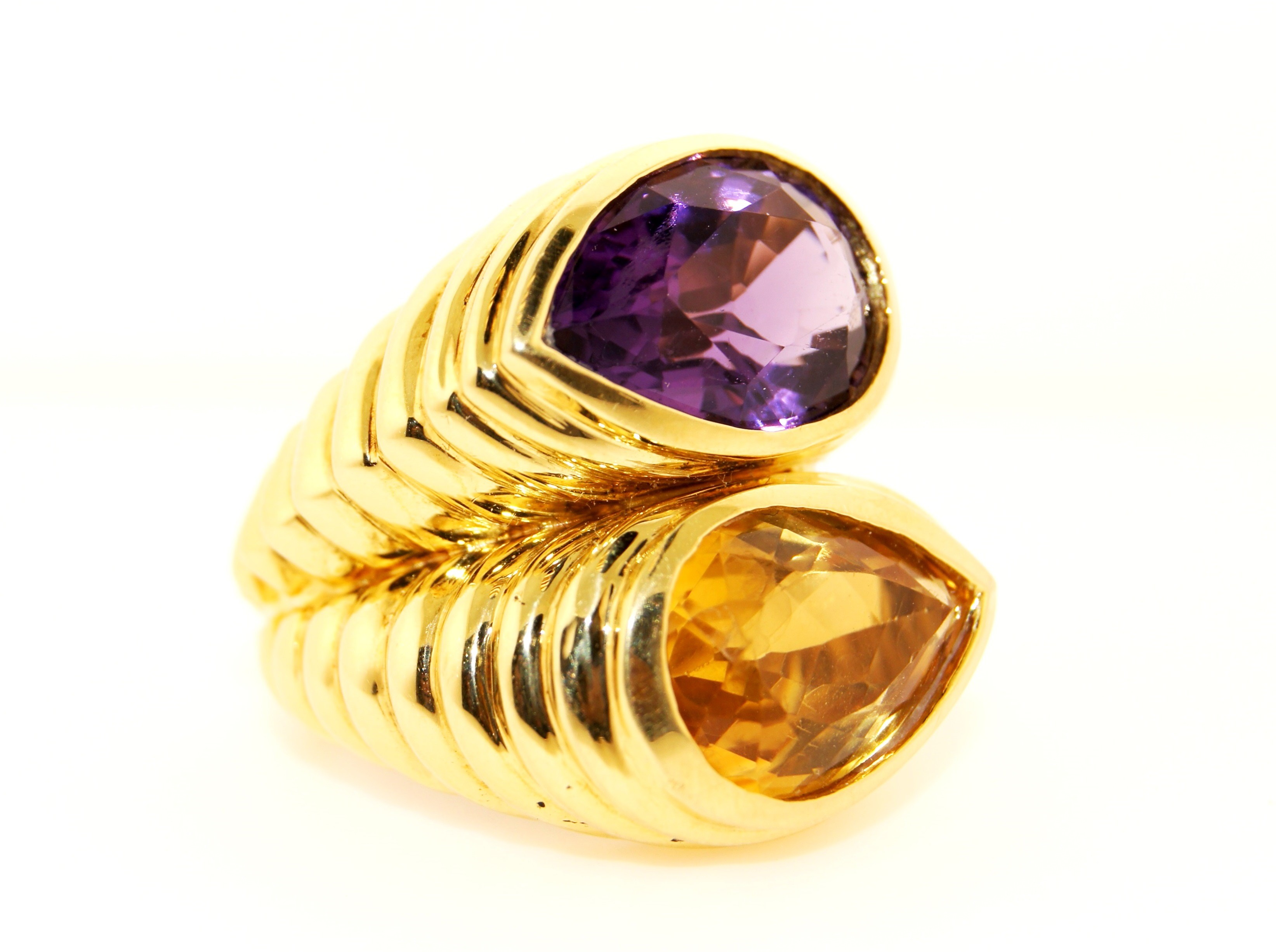 18K Yellow Gold with Topaz and Amethyst Ring