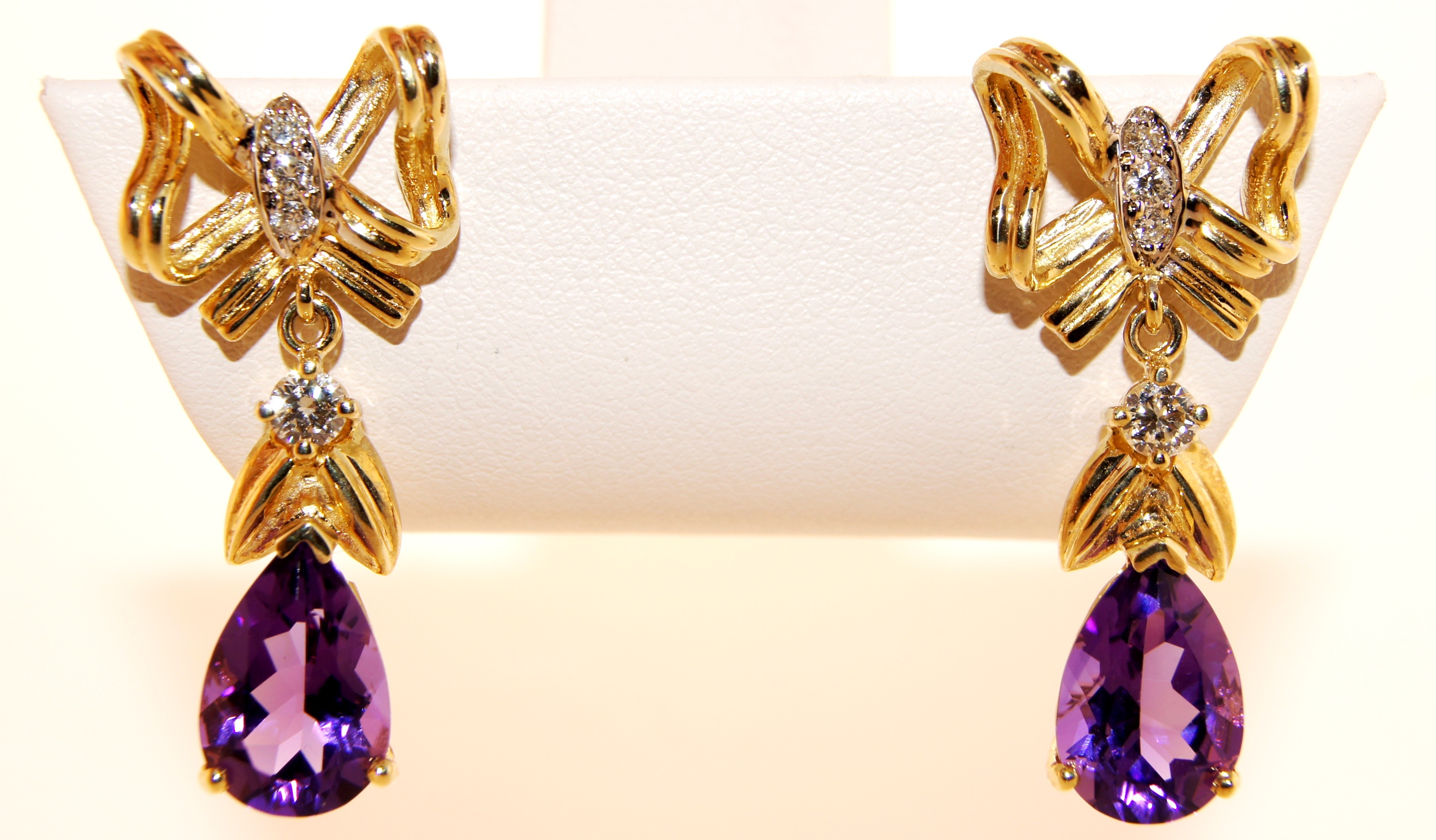 Yellow Gold Diamond and Amethyst Earrings