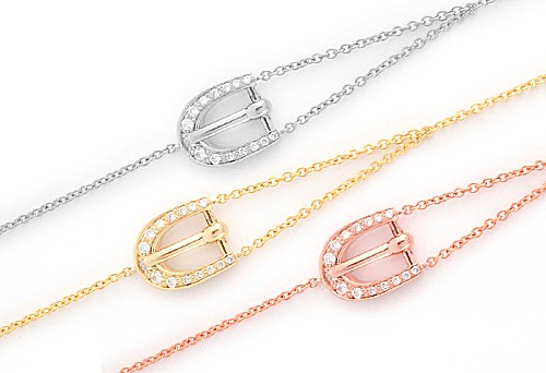 14k yellow, white and rose gold buckle bracelet with pave diamonds of fine quality. Available in any length.