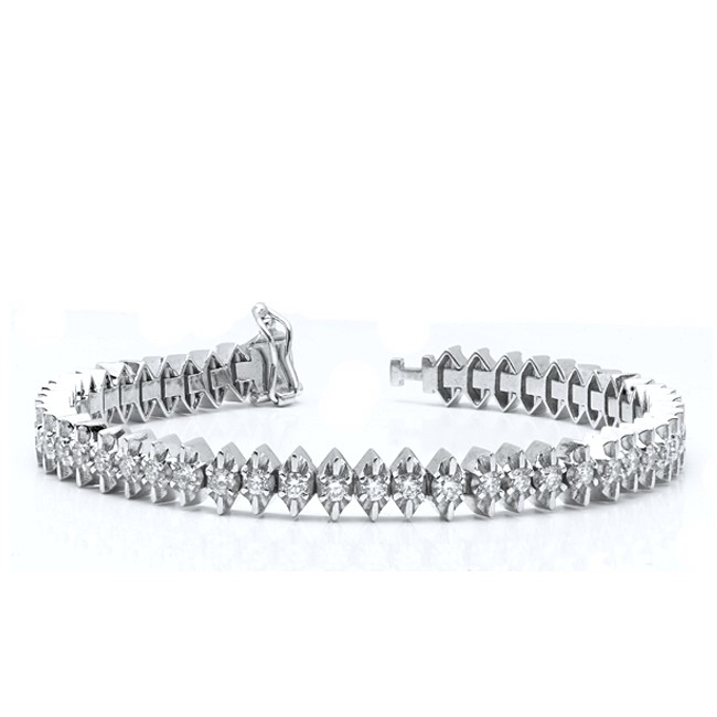 18K white gold diamond tennis bracelet with 51 round diamonds 3.36 point of fine quality.