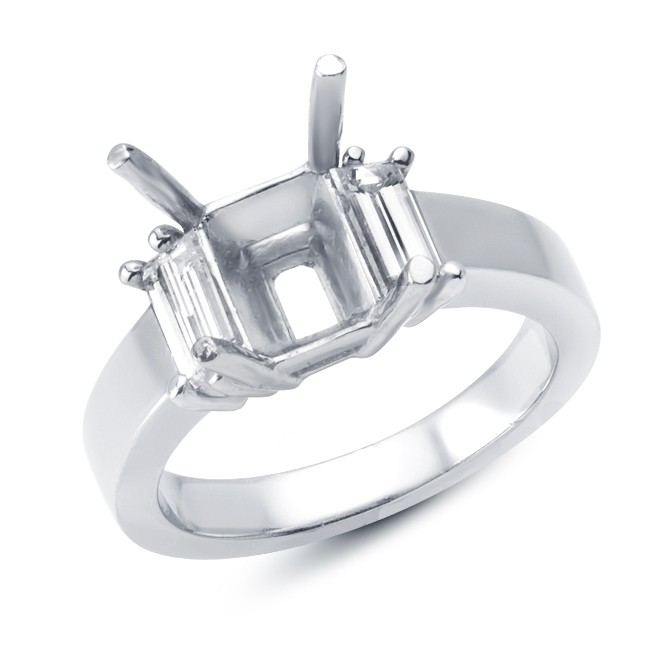 Platinum diamond engagement ring with 2 baguette cut diamonds 0.73cts TW.