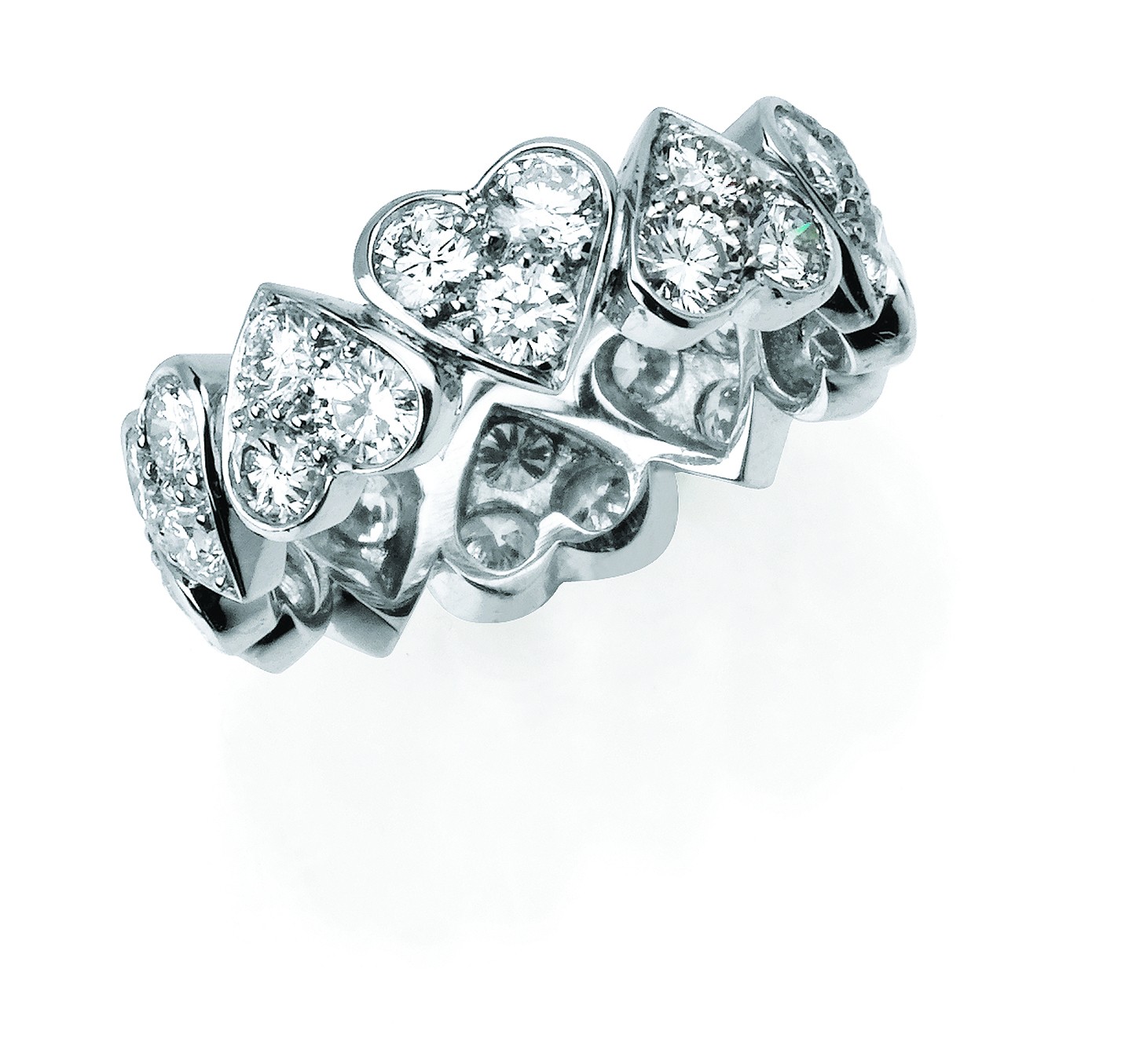 Platinum diamond eternity heart wedding band with 30 round diamonds 2cts TW.