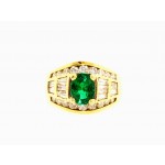 18K Yellow Gold Baguette Diamond and Emerald Ring