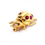 Ruby and Diamond Yellow Gold Bee Pendant