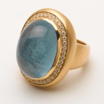 18K Yellow Gold Handmade Cabochan Aqua Ring