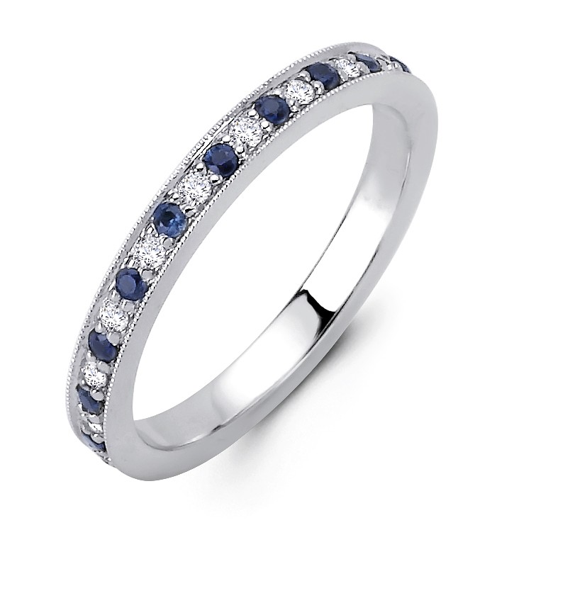 18K White Gold Diamond and Sapphire Band